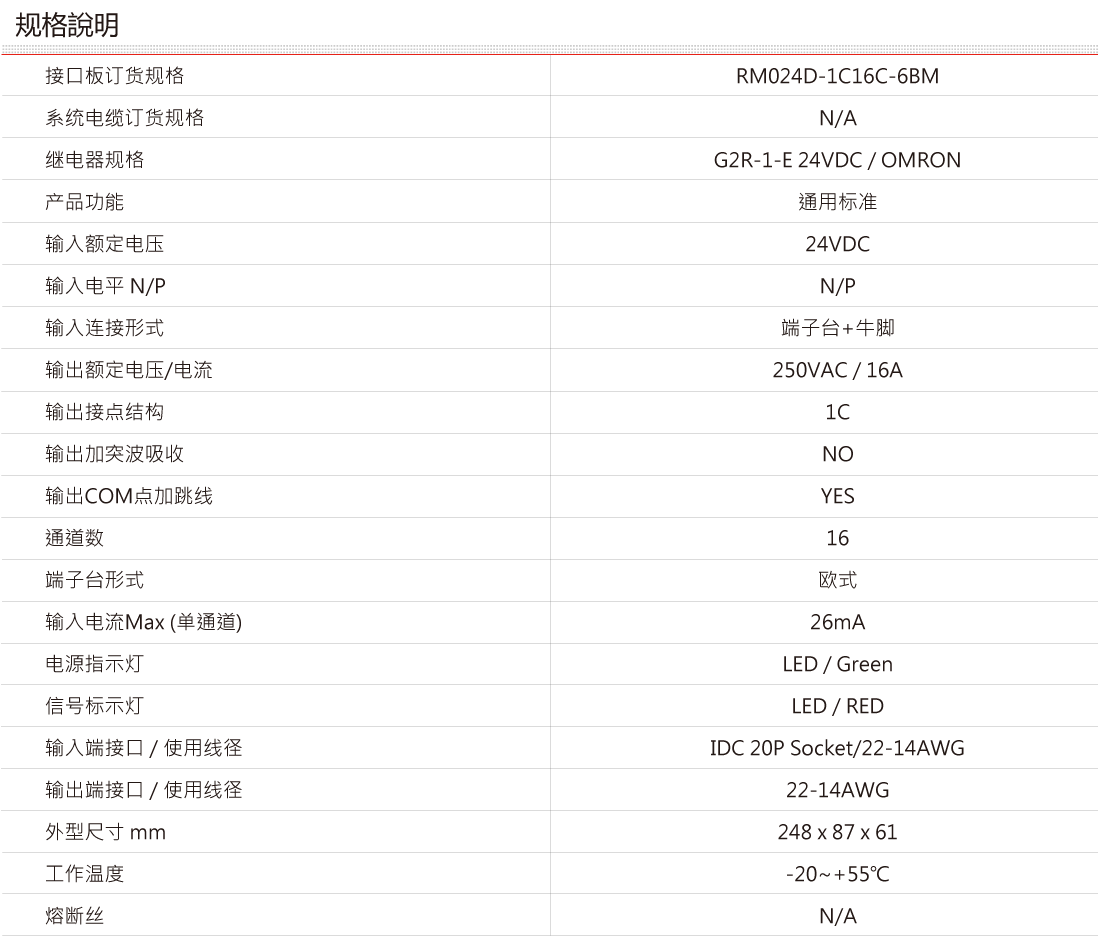 24VDC, 16A, Relay / 1C / 16sets