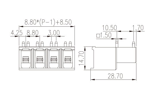 - PCB connector Socket , Wave soldering , Pitch: 8.80 mm , 600V, 30A
